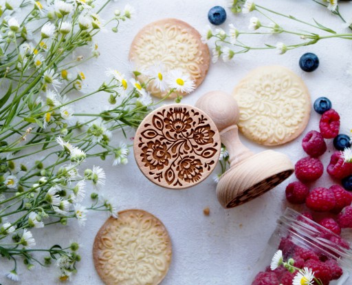 Stempel najczęściej używany jest do ozdabiania maślanych ciasteczek, ale można też go stosować do masy cukrowej, tart czy nawet do ceramiki.