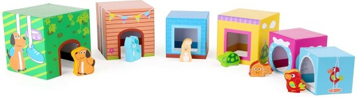 Układanka piramidka z uroczymi zwierzątkami, która idealnie nada się dla rocznego malucha. Maluch może stworzyć wysoką 58 cm kolorową wieże z kartonowych klocków. Do zestawu dołączone zostały również urocze zwierzątka, które mogą zostać umieszczone w kartonowych domkach.