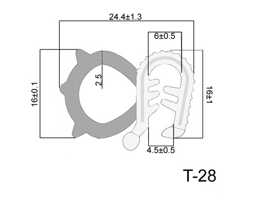 Uszczelka T-28 czarna, gumowa, zbrojona.