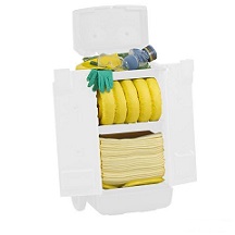 Zestaw mobilny Topserw Kaddie wyposażony w sorbenty chemiczne polipropylenowe (żółte) służy do pochłaniania agresywnych chemikaliów, wszelkiego typu cieczy od płynów przemysłowych, przez produkty ropopochodne. Zapewnia natychmiastowy dostęp do sorbentów o zróżnicowanych kształtach, co w sposób zasadniczy decyduje o powodzeniu akcji usuwania rozlewów cieczy niebezpiecznych lub ograniczania ich w sytuacji nagłego wypadku.