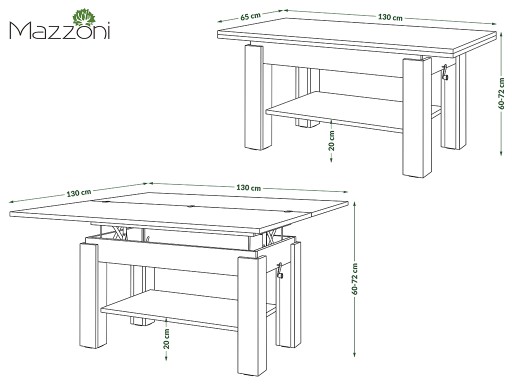 - jego blat można rozłożyć jak książkę zamieniając ławę w duży stół