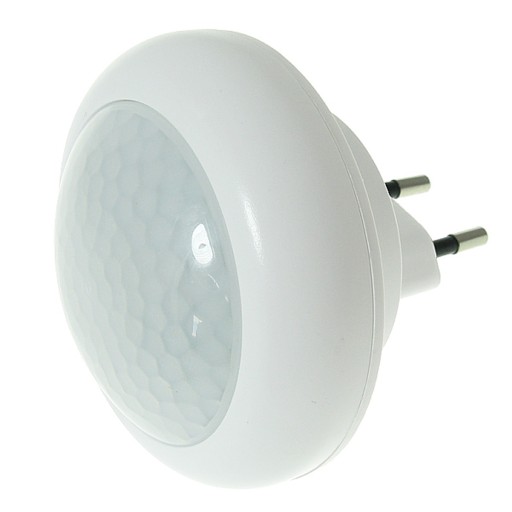 Nowoczesna i estetyczna lampka nocna wtykowa, wkładana bezpośrednio do gniazdka elektrycznego. Posiada wewnątrz wysokiej jakości czujnikiem PIR oraz zmierzchu. Umieszczony w kopułce lampy PIR wychwytuje ruch człowieka i automatycznie załącza 8 energooszczędnych diod LED. Lampka posiada także czujnik odpowiadający za rozpoznanie natężenia światła zewnętrznego, przez to nie aktywuje się gdy jest jasno. Czas świecenia lampy automatycznie wydłuża się gdy wykrywa ona ruch.