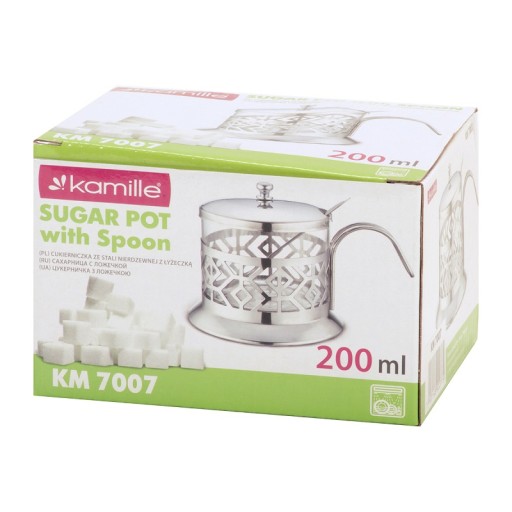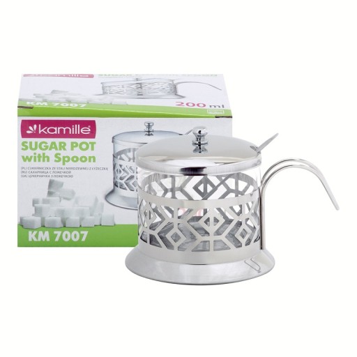 Cukiernica ze szkła i stali nierdzewnej z łyżeczką 200 ml KAMILLE KM-7007
