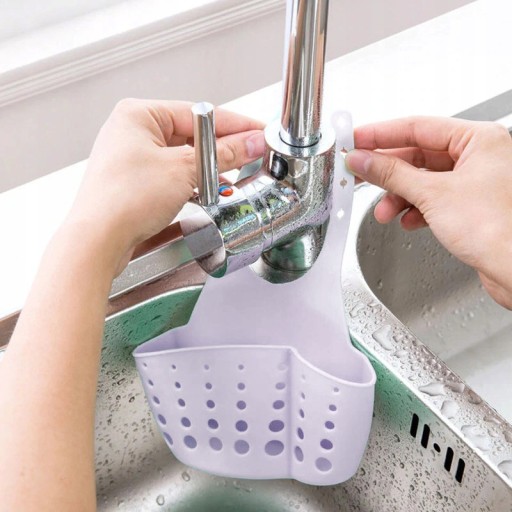 Wystarczy zawiesić go wokół kranu w zlewie lub umywalce. Możesz ustawić długość, jak chcesz, niezawodne zapięcie zapewnia, że będzie mocno trzymać na miejscu.