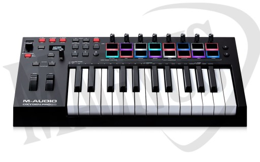 Oxygen Pro 25, stanowiący połączenie klawiatury z 25 najlepszymi w swojej klasie, czułymi na dynamikę, półważonymi klawiszami z aftertouch i możliwością przypisywania stref oraz wbudowanym arpeggiatorem, 16 dynamicznych, przypisywalnych padów z podświetleniem RGB i funkcją Note Repeat oraz 8 przypisywalnych pokręteł i przycisków, ma wszystko, czego potrzebujesz, aby maksymalnie wykorzystać swoją kolekcję instrumentów wirtualnych i program DAW.