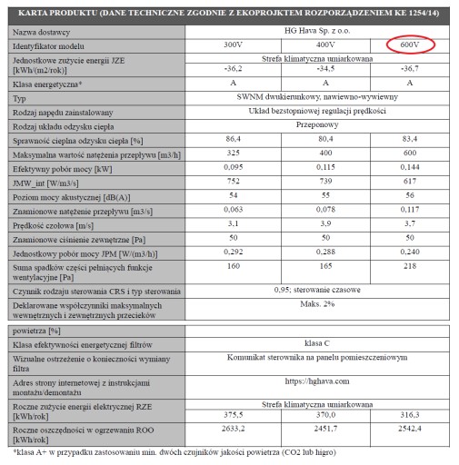 Centralę wyposażono w energooszczędne wentylatory z silnikami komutowanymi elektronicznie (EC) o wysokiej sprawności. Cały rekuperator, a w tym wymiennik i wentylatory, spełniają wymogi dyrektywy Ekoprojekt na rok 2018 (ErP 2018).