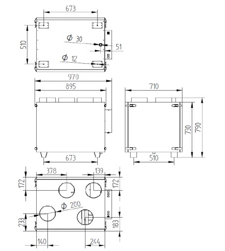 Obudowa rekuperatora składa się z obudowy zewnętrznej i z wewnętrznej z blachy ocynkowanej. Pomiędzy nimi znajduje się warstwa izolacji, skutecznie separująca wnętrze centrali od parametrów powietrza w pomieszczeniu.