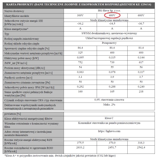 Rekuperator HAVA REKU 400 V Centrala Wentylacyjna