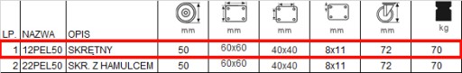W skład kompletu wchodzą cztery zestawy mocowane na płytkę o kodzie 12PEL50. W tabeli pod pozycją 1. W przypadku zastosowania tej oponki zyskujemy dużą odporność na ścieralność oraz uszkodzenia fizyczne, bieżnik koła nie pozostawia śladów.