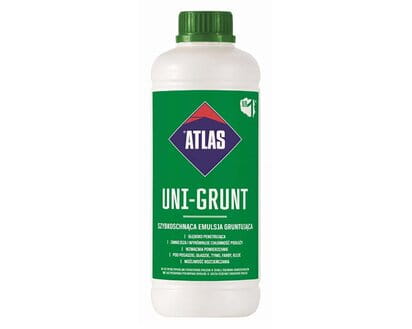 ATLAS UNI-GRUNT wzmacnia powierzchniowo gruntowane podłoża mineralne, wnika w strukturę materiału, wzmacnia ją i poprawia jej nośność. Ogranicza chłonność podłoża, zapobiegając „odciąganiu” nadmiernej ilości wody z produktu nakładanego na zagruntowane podłoża: podkłady cementowe z ogrzewaniem podłogowym lub bez, różnego rodzaju tynki, itp. Ponadto uszczelniając strukturę gruntowanego podłoża, zwiększa wydajność materiałów (np. farb) użytych do wykonania kolejnej warstwy, redukuje zużycie.