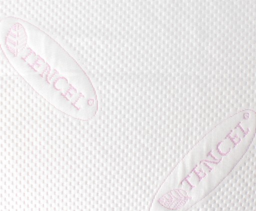Pokrowiec materacowy "Tencel" wykonany jest z elastycznej, rozciągliwej tkaniny materacowej wysokiej jakości o dużej gramaturze (aż 310 g/m2). Materiał posiada charakterystyczną strukturę dzianinową z drobnymi nakłuciami zapewniającymi swobodną cyrkulację powietrza. Włókna lyocell wchodzące w skład tkaniny należą do grupy najnowocześniejszych naturalnych włókien stosowanych w materacach i całej branży związanej ze zdrowym i komfortowym snem. Pokrowiec TENCEL jest przyjemny w dotyku i cechuje się dużą przewiewnością. Mimo, że lyocell jest bardzo drogim surowcem, tkaniny z niego wykonane (materacowe, ubraniowe) należą do najczęściej wybieranych przez klientów.