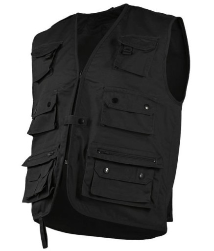 Kamizelka zamykana jest zamkiem błyskawicznym. Patka z zatrzaskiem umożliwia zaczepienie na przykład paska od aparatu fotograficznego, dzięki czemu nie obija się on o ciało podczas spacerowania. Na plecach umieszczona jest duża kieszeń zamykana zamkiem.
