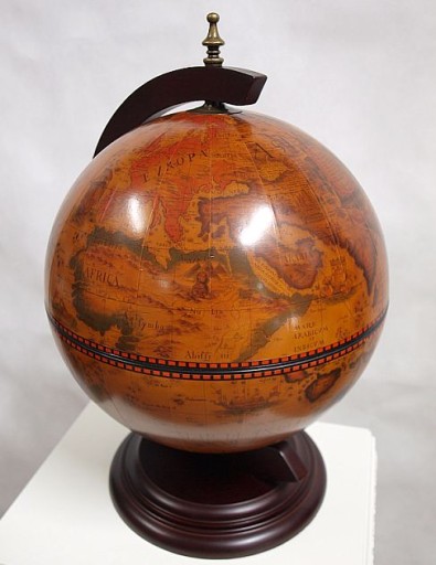 Zapraszam do zakupu efektownego barka w kształcie globusa. Przedmiot wykonany został z drewna egzotycznego . Wewnątrz otwieranej kuli znajduje się miejsce na butelki i kieliszki. Na powierzchni kuli widnieje mapa starożytnego świata. Przedmiot prezentuje się wspaniale. Z pewnością zachwyci wszystkich Twoich gości.