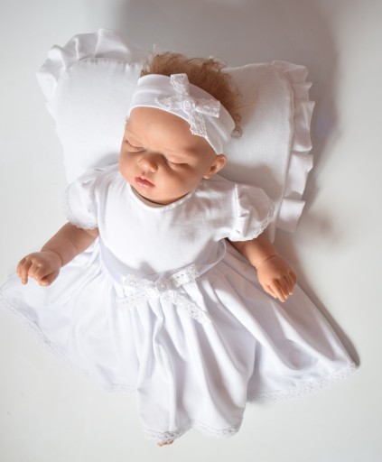 PIĘKNY BAWEŁNIANY KOMPLET DO CHRZTU SUKIENKA I OPASKA