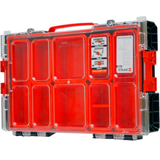 Qbrick System PRO Organizer 100 to kompaktowa skrzynka organizująca narzędzia do SYSTEMU PRO. Jej wymiary 452x296x79mm sprawiają że znajdzie swoje zastosowanie zarówno u wielu elektryków, monterów, jak również w warsztatach samochodowych.