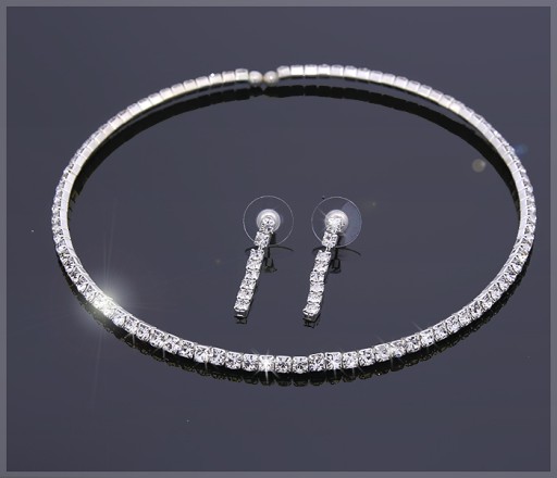 Kolia sprężysta ozdobiona szklanymi cyrkoniami i kolczyki w komplecie.