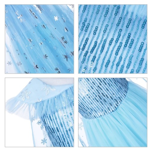 ✨✨✨Sukienka uszyta z połyskujących i błyszczących materiałów. Przyozdobienie błękitnymi i świecącymi cekinami, zamieni Małą Księżniczkę w najjaśniejszą gwiazdę zabawy karnawałowej czy przedstawienia.