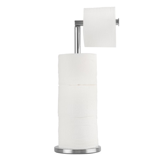 Praktyczny stojak 2w1 z uchwytem na papier oraz miejscem na zapasowy papier toaletowy. Stojak łącznie mieści do 4 rolek papieru.