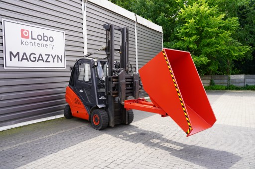 - istotnym elementem konstrukcji jest obejma, która uniemożliwia spadnięcie z ramion wózka widłowego podczas wyładunku.