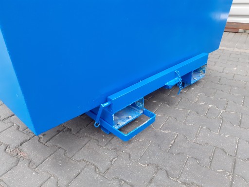 10. podstawa kontenera jest zabezpieczona od frontowej strony przed niechcianym wysunięciem się wideł i uszkodzeniem pojemnika w pozycji otwartej. Wykonana jest z blachy o grubości od 3 - 8 mm.