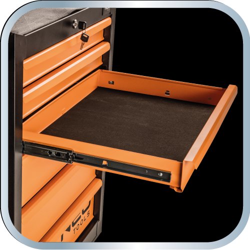 Szafka narzędziowa NEO (nr ref. 84-222) o wymiarach 680 x 460 x 1030 mm. Szafka posiada 7 praktycznych szuflad na narzędzia, zamykanych za pomocą zamka centralnego. Wszystkie szuflady są w pełni otwierane, posiadają prowadnice kulkowe, zapewniające długoletnie, płynne i niezawodne działanie. Szuflady zabespieczone są blokadą zapadkową, która zapewnia ochronę otoczenia w czasie transportu. Powierzchnia blatu roboczego pokryta jest gumową wykładziną, odporną na działanie oleju i smarów. Pięciocalowe, ciche, skrętne koła ułatwiają manewrowanie szafką dodatkowo wyposażone są w hamulec. Nośność szafki 280 kg. Szafka wyposażona jest w uchwyt, który ułatwia prowadzenie. Niezawodność produktu potwierdza 25-letnia gwarancja. Marka NEO spełnia oczekiwania profesjonalistów