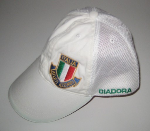 Czapka z daszkiem Diadora - Italia Atleti Azzurri. Rozmiar: One Size. Kolor: biały. Używana. Stan jak na zdjęciach - do odświeżenia. Z Włoch. Cena za 1 szt.