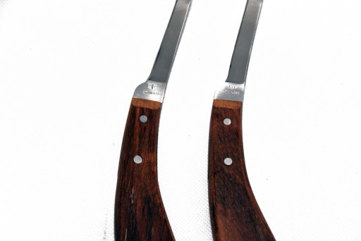 Noże do korekcji racic i kopyt PRAWY Profesjonalny nóż ,wykonany z najlepszej stali nierdzewnej,bardzo ostre i trwałe.Rączka wykonana z drzewa bukowego,dobrze dopasowuje się do ręki.Wyjątkowy ostre noże .Bardzo niska cena. Noże produkowane w Anglii.Polecam