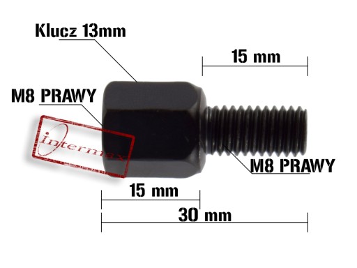 ADAPTER / PRZEDŁUŻKA DO MOCOWANIA LUSTERKA GWINT PRAWY M8 na GWINT M8 PRAWY