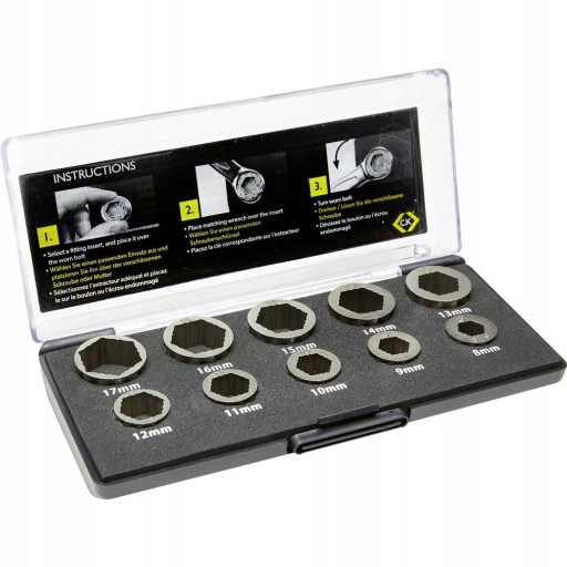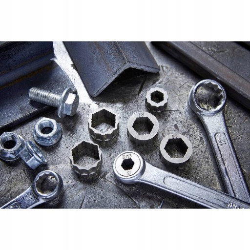 - Adapter do odkręcania śrub/nakrętek w rozmiarach: 8, 9, 10, 11, 12, 13, 14, 15, 16 i 17 mm.