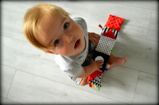 Mięciutka, materiałowa książeczka sensoryczna od Mom's care została stworzona z myślą o najmłodszych. To właśnie w pierwszym okresie życia dziecka kluczową rolę odgrywa stymulacja zmysłów. Wodzenie spojrzeniem i wpatrywanie się w zabawki rozwija zmysł wzroku oraz spostrzegawczość malucha. Do uszycia książeczek sensorycznych używamy bezpiecznych, przyjemnych w dotyku materiałów o różnej strukturze, które z pewnością zaciekawią badawcze paluszki. Dzięki temu dziecko poznaje świat i stymuluje zmysł dotyku. Noworodek ma słaby wzrok, dlatego czarno-biała książeczka sensoryczna z dodatkiem czerwonego, będzie dla niego idealna. Przewaga biało-czarnych elementów rozwija prawidłowe postrzeganie barw. Wraz z upływem czasu dziecko widzi coraz lepiej, więc można sięgać po zabawki w innych kontrastujących kolorach.