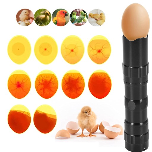 ⭐ Lampka LED do prześwietlania jajek: na korpusie inkubatora znajduje owoskop do obserwacji rozwoju zarodka. W zestawie znajduje się również dodatkowy owoskop w postaci latarki.