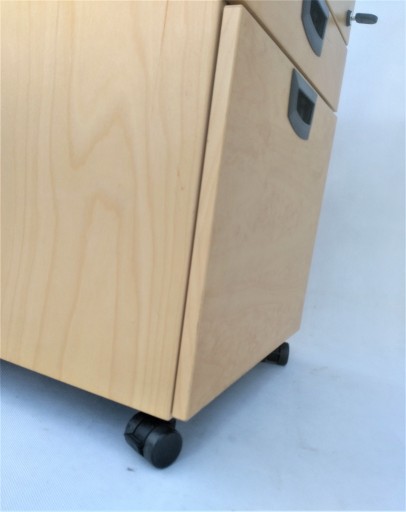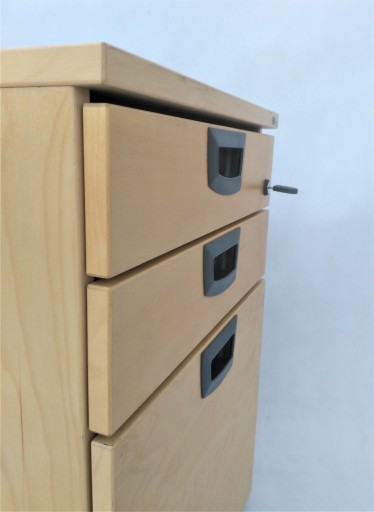 Kontenerek Szwedzkiej marki Kinnarps wykonany jest z wysokogatunkowych materiałów, dzięki czemu sprawdza się nie tylko do użytku domowego, ale również mocnej eksploatacji w przestrzeni biurowej. Organizer posiada 3 szuflady, które pomogą Ci utrzymać porządek w biurowych drobiazgach. Na spodzie kontenerka znajdują się kółka umożliwiające swobodne przestawianie go, a możliwość blokady pozwala na stabilne ustawienie w przestrzeni pod biurkiem. Całość zamykana na klucz.
