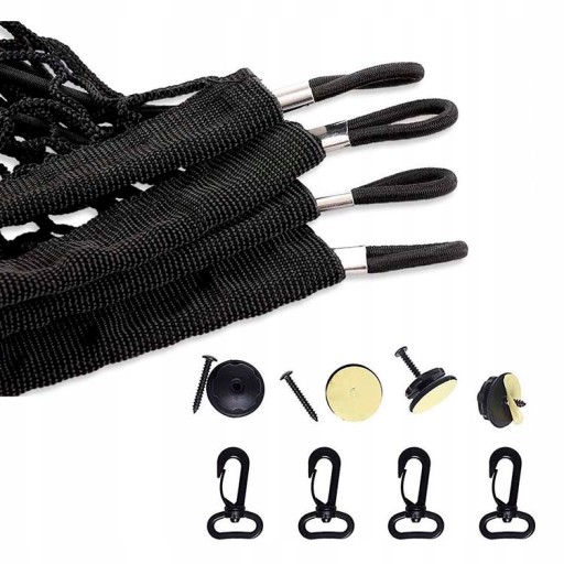 Pasuje do każdego rodzaju auta. Może być montowana zarówno jako siatka dociskowa jak i wisząca kieszeń bądź torba.