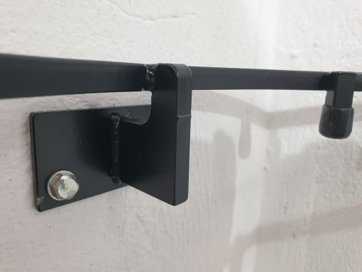Wykonany z pełnej stali ( nie z rurki) nieskładany , mocowany do ściany lub innych stałych konstrukcji.