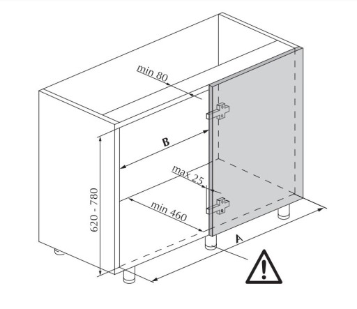 - montaż do szafki narożnej z frontem na zawiasach równoległych