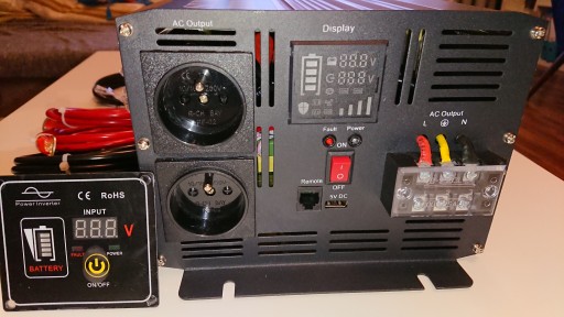 - panel sterowania - bogate informacja o pracy przetwornicy, stanie akumulatora, podświetlane piktogramy informujące o stanie pracy układu, alerty o przekroczeniu zadanych wartości, jednym słowem wszystko co potrzeba byśmy wiedzieli czy układ pracuje poprawnie