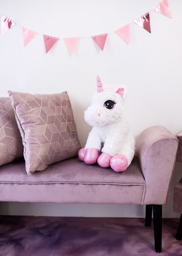 Uroczy Tęczowy Jednorożec w kolorze białym lub różowym to przytulanka, którą pokocha niejedna mała i duża pociecha. To idealny towarzysz zarówno do zabawy jak i do przytulenia podczas snu.