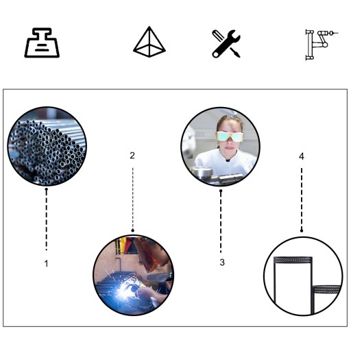 - Konstrukcja z trójkątnymi nogami zapewniającymi stabilność.