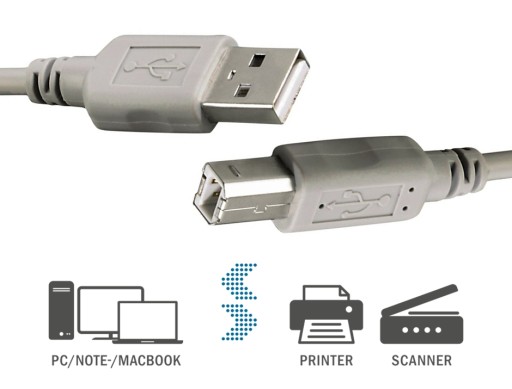 Kabel Hama USB-B możesz wykorzystać do ładowania dowolnego urządzenia z wejściem USB B. Przewód jest też odpowiedni do transferu danych, więc możesz podłączyć nim drukarkę lub skaner do swojego komputera.