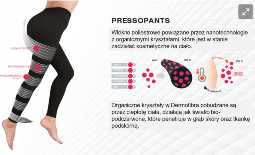 Unikalna kompozycja włókien Dermofibra® sprawia, że leginsy Arosha nie wymagają dodatkowego użycia substancji czynnych do ich aktywnego działania. Ich antycellulitowe i modelujące funkcje uruchamiane są za pomocą ciepłoty ciała! Łatwe w noszeniu, wygodne przez cały dzień. Specjalny splot tkaniny daje wrażenie mikro-masażu w ciągu dnia. Nie tracą swoich właściwości - nawet po praniu. Umieszczone wstawki z 99.9% czystego srebra – włókien Resistex Silver działają antybakteryjnie. Dermofibra® to włókno poliestrowe powiązane przez nanotechnologię z organicznymi kryształami: aluminium, silikonu, tytanu, magnezu i cynku.