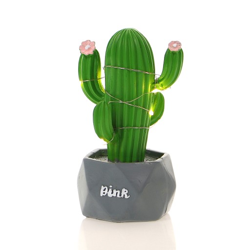 Przedmiotem sprzedaży jest nowoczesna lampka LED w kształcie kaktusa w doniczce.