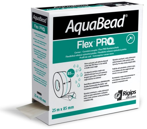 RIGIPS AquaBead® Flex PRO - jest łatwym w stosowaniu narożnikiem elastycznym przy montażu płyt gipsowo-kartonowych. Jego atutem jest aktywowany wyłącznie wodą klej po wewnętrznej stronie taśmy. Dzięki temu skraca to do minimum szybkość aplikacji produktu.