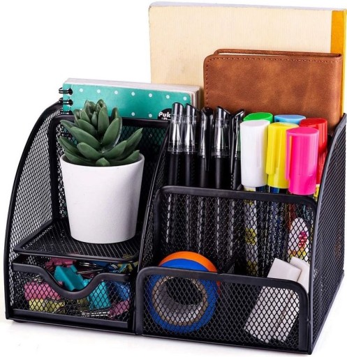 Produkt ten idealnie nadaje się dla osób, które mają problem z koncentracją. Pojemnik na przybory to przedmiot, który powinien mieć każdy. Znajdujący się w ofercie organizer na biurko wykonany został z wysokiej jakości materiału, jakim jest metal, dzięki czemu jest bardzo trwały i posłuży przez długi czas.