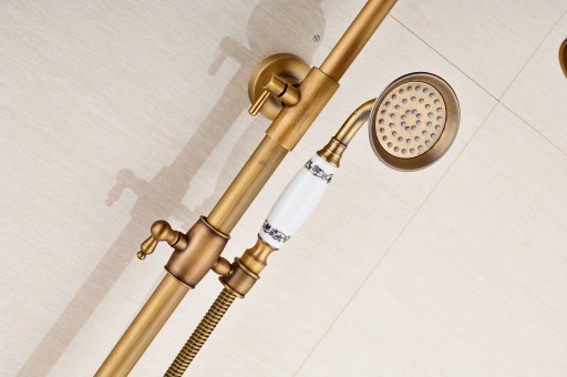 zestaw prysznicowy w stylu retro z deszczownicą, wylewką, słuchawką i baterią termostatyczną