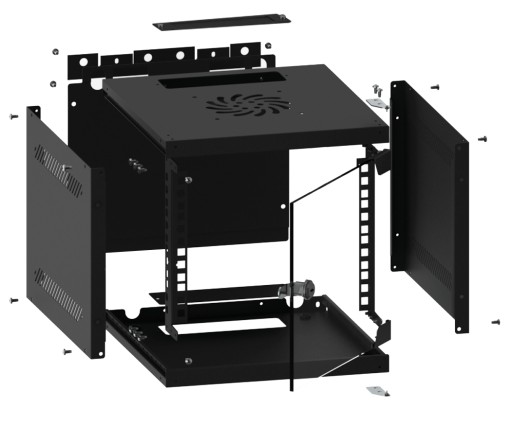 Dzięki odpowiedniej konstrukcji, szafa umożliwia łatwy, samodzielny montaż. Charakteryzuje się szczelnością IP20, otwieranymi przednimi drzwiami z możliwością obrotu do 180°, wyposażonymi w zamek (w zestawie z produktem). Szafa posiada możliwość wprowadzenia okablowania poprzez górny i dolny panel. Całość wykonana jest z wysokiej jakości stali walcowanej, a dzięki konstrukcji do samodzielnego montażu (flat pack) znajduje się w jednym płaskim opakowaniu co ułatwia transport. Dodatkowo w przesyłce załączone są dodatkowe akcesoria do montażu naściennego, śruby M6 oraz zaślepki paneli wejściowych.