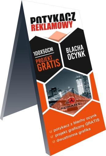 - przedmiotem aukcji jest potykacz reklamowy 100 x50 cm wykonany z blachy ocynkowanej o grubości 0,7 mm