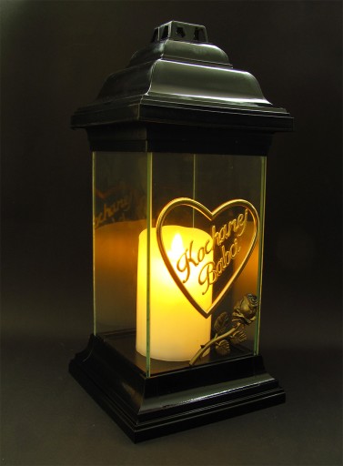 Pięknie wykonany znicz ze szkła bezbarwnego z dedykacją umieszczoną w sercu. Znicz jest ciężki, solidny, a szeroka podstawa zapewnia stabilność. Elementy plastikowe wykonane są z twardego plastiku odpornego na wysokie temperatury.
