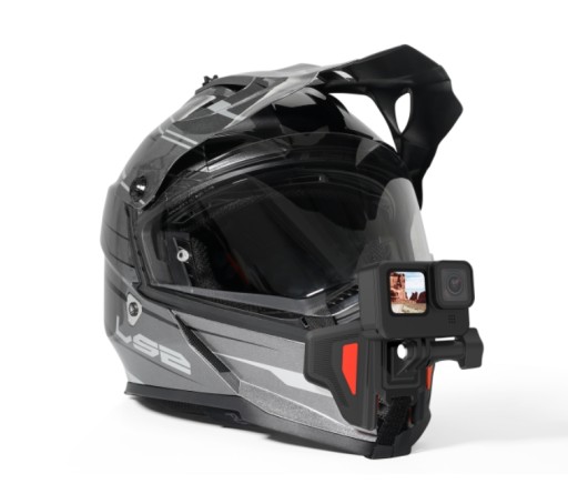 Uchwyt na kask pozwala na bardzo stabilne zamocowanie kamery na kasku od motocykla, quada, itp.