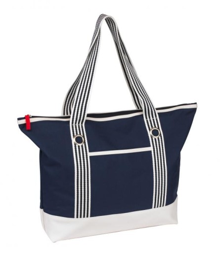 Torba plażowa MARLENE z główna komorą oraz dodatkową wewnętrzną kieszenią na zamek, kieszenią z przodu, paskiem na ramię z dekoracyjnymi metalowymi oczkami, odpornym na plamy spodem.