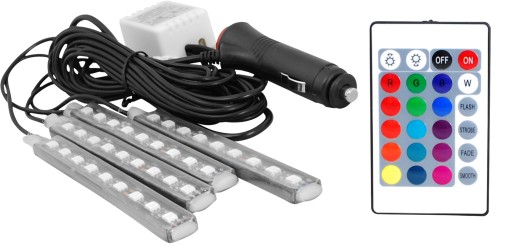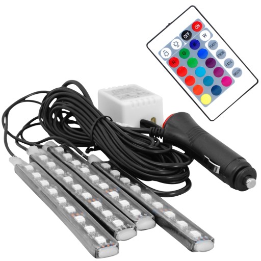 OŚWIETLENIE WNĘTRZA SAMOCHODU 4 X LISTWY LED RGB KONTROLOWANE PILOTEM